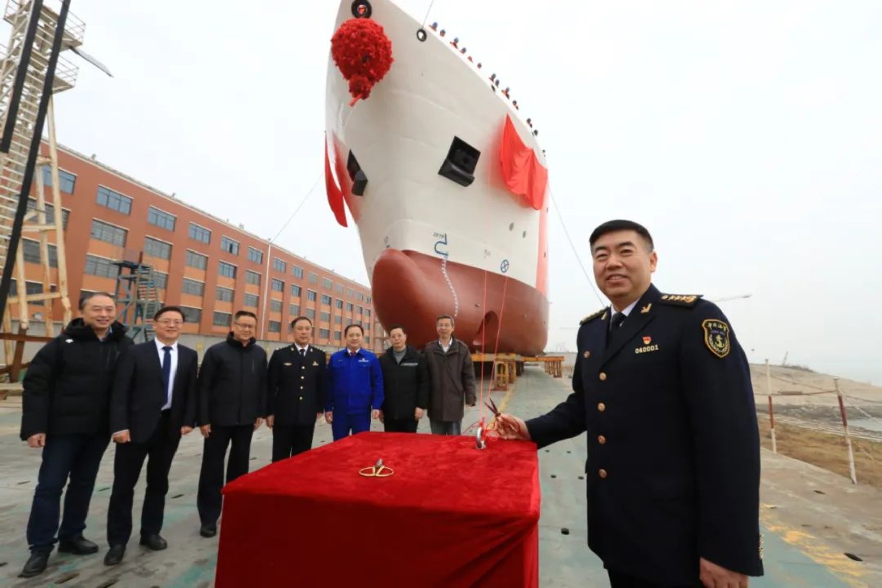 ▲河北海事局黨組書記、局長張鐵軍為“海巡041”命名揭幕