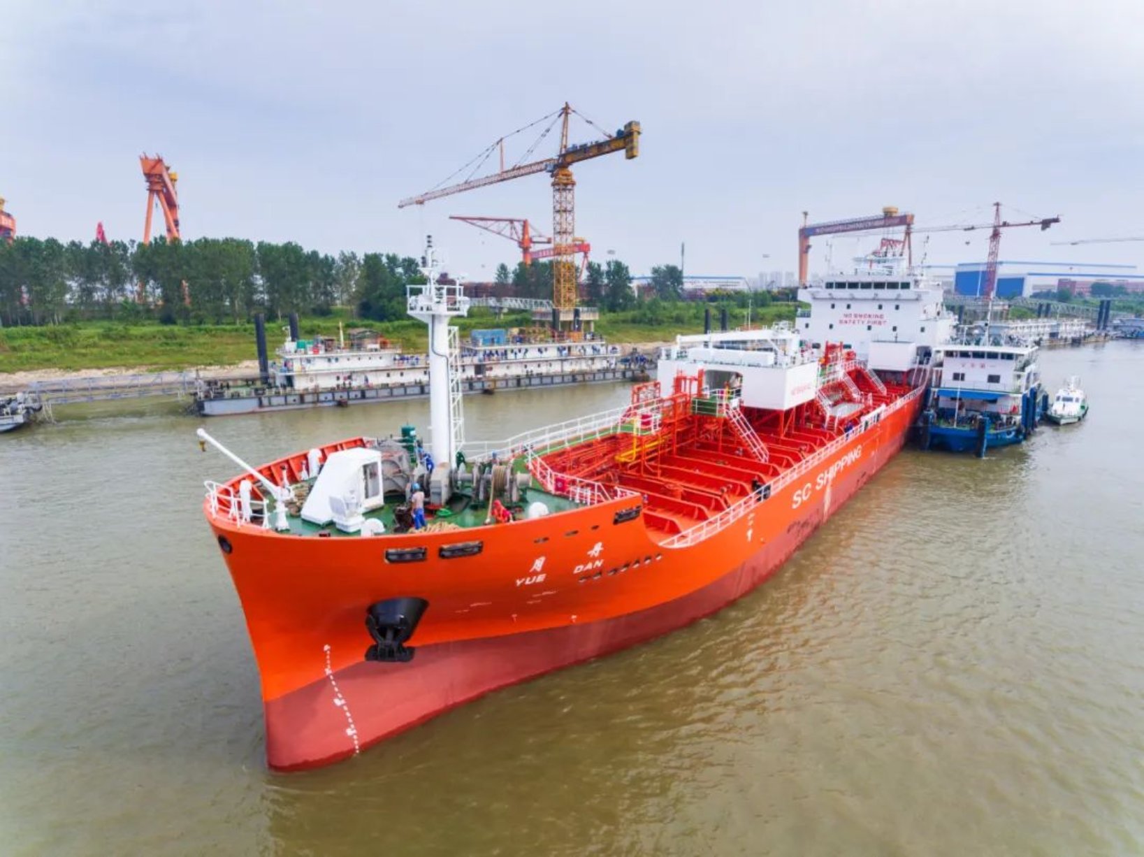 9月19日上午,由武昌造船為上海君正船務(wù)有限公司建造的 7200DWT化學(xué)品船3號船離廠,7200DWT化學(xué)品船4號船下水,不斷吹響保交船攻堅戰(zhàn)的勝利號角.上海君正船務(wù)有限公司監(jiān)造部部長劉仁杰,武昌造船黨委委員、副總經(jīng)理田軍及相關(guān)單位人員出席下水和送船活動。
