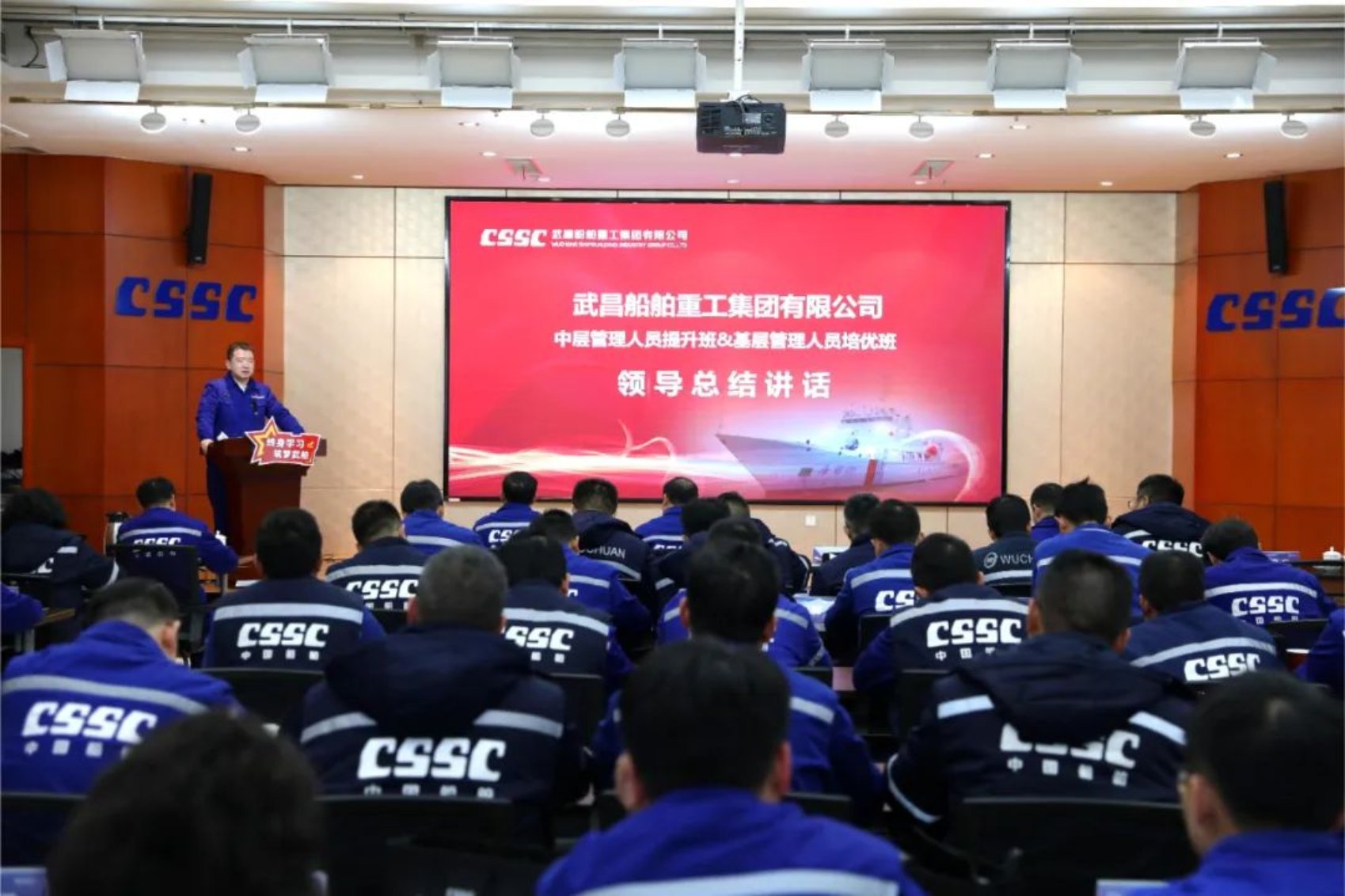 12月14日,中國船舶集團(tuán)武昌造船首屆中層管理人員提升班、基層管理人員培優(yōu)班結(jié)業(yè)典禮在創(chuàng)新樓12樓武船講堂順利舉行。公司黨委書記、董事長姜濤,黨委委員、副總經(jīng)理田軍,黨委委員、副總經(jīng)理、總工程師唐瀅出席結(jié)業(yè)儀式,培訓(xùn)班全體學(xué)員參加結(jié)業(yè)典禮。