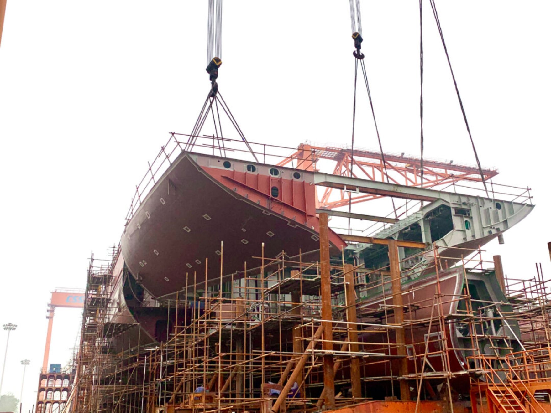 目前,該船分段建造工作已完成,一級總組已完成,二級總組按生產(chǎn)進度有序推進,艙室密試、艉部軸舵系施工等船臺階段任務已提前開展,具備上船臺后連續(xù)搭載和關鍵項目施工條件。后續(xù)項目組將繼續(xù)以高標準、高質(zhì)量組織好建造工作,錨定船舶下水目標不放松,確保該船按節(jié)點順利下水。