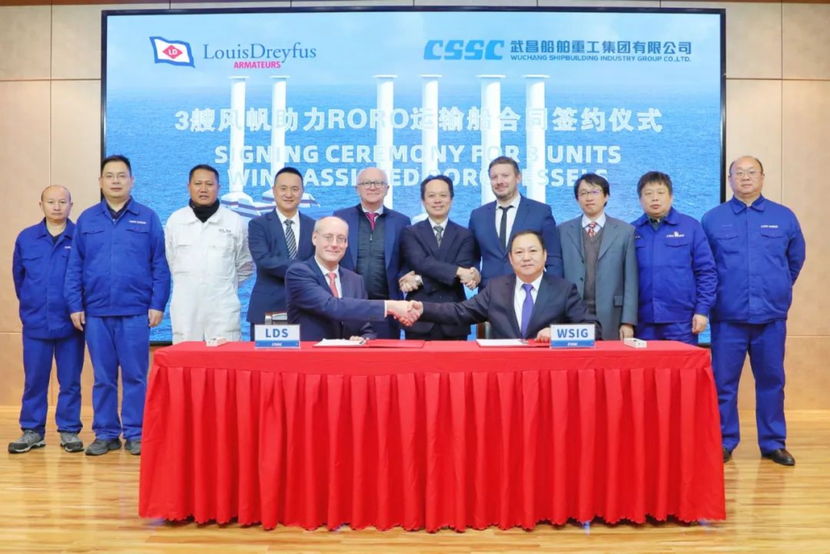 新年開新局,奮斗創(chuàng)佳績!2024年的第一個工作日,中國船舶集團武昌造船迎來首個經營開門紅!武昌造船與長期合作伙伴——法國LDA公司再度牽手合作,和其下屬公司LD SEAPLANE SAS 簽訂3艘風帆助力RORO運輸船建造合同。