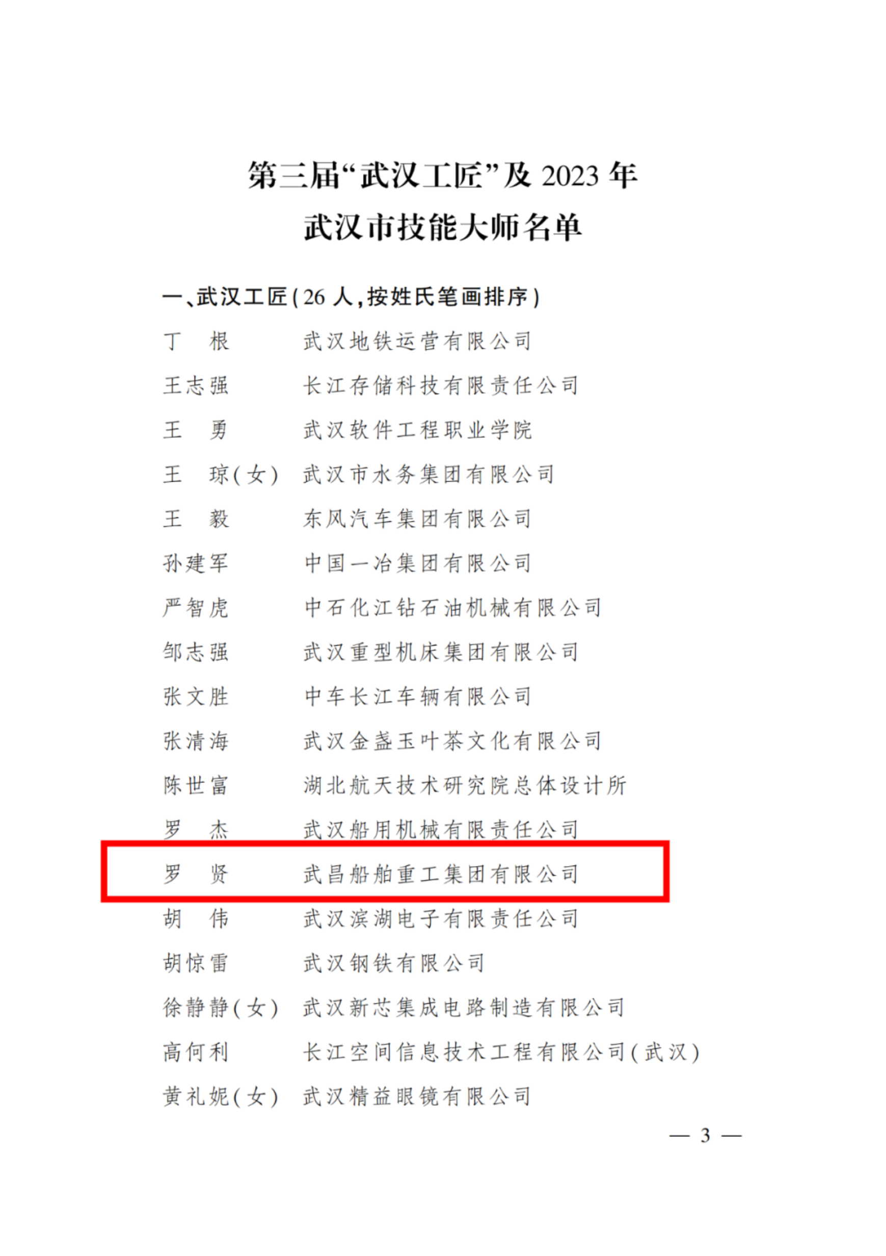 匠心筑夢,技能報國。近日武漢市人民政府公布第三屆武漢工匠及2023年武漢市技能大師名單中國船舶集團武昌造船特船事業(yè)部羅賢入選“武漢工匠”,機電事業(yè)部陶興泉入選“武漢市技能大師”。