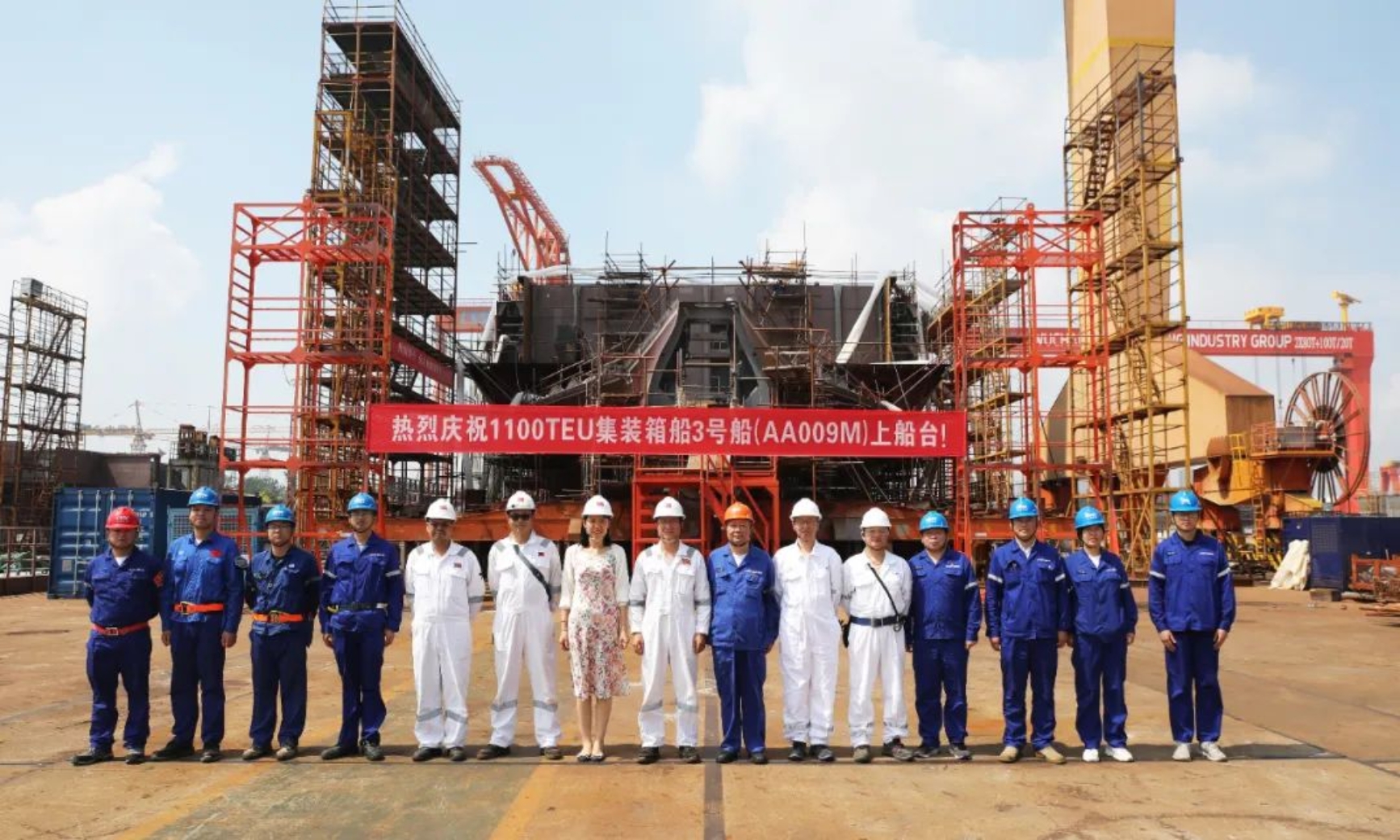 1100TEU集裝箱船3號船實(shí)現(xiàn)上船臺(tái)節(jié)點(diǎn)