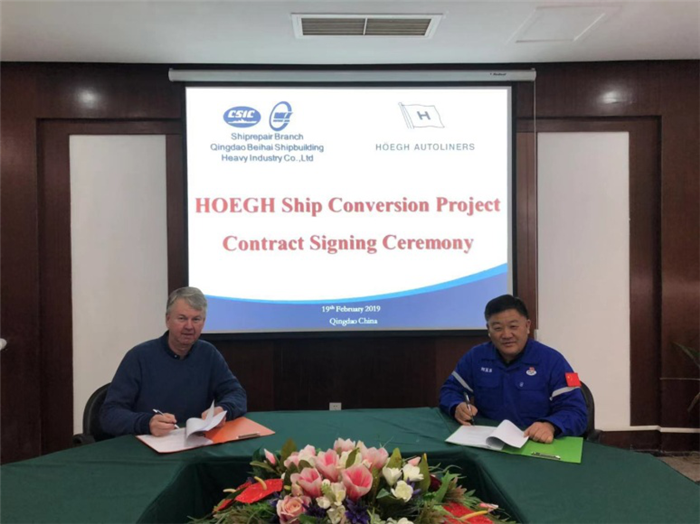 2月19日,武船集團(tuán)北船重工副總經(jīng)理、修船分廠廠長(zhǎng)劉玉東和挪威禮諾航運(yùn)公司新造和改裝負(fù)責(zé)人JAN RUNE MORKEN先生在修船分廠簽署HOEGH 2019年改裝合同。這是北船重工今年首次簽署的改裝工程新訂單,為今年修船工作取得開(kāi)門紅。