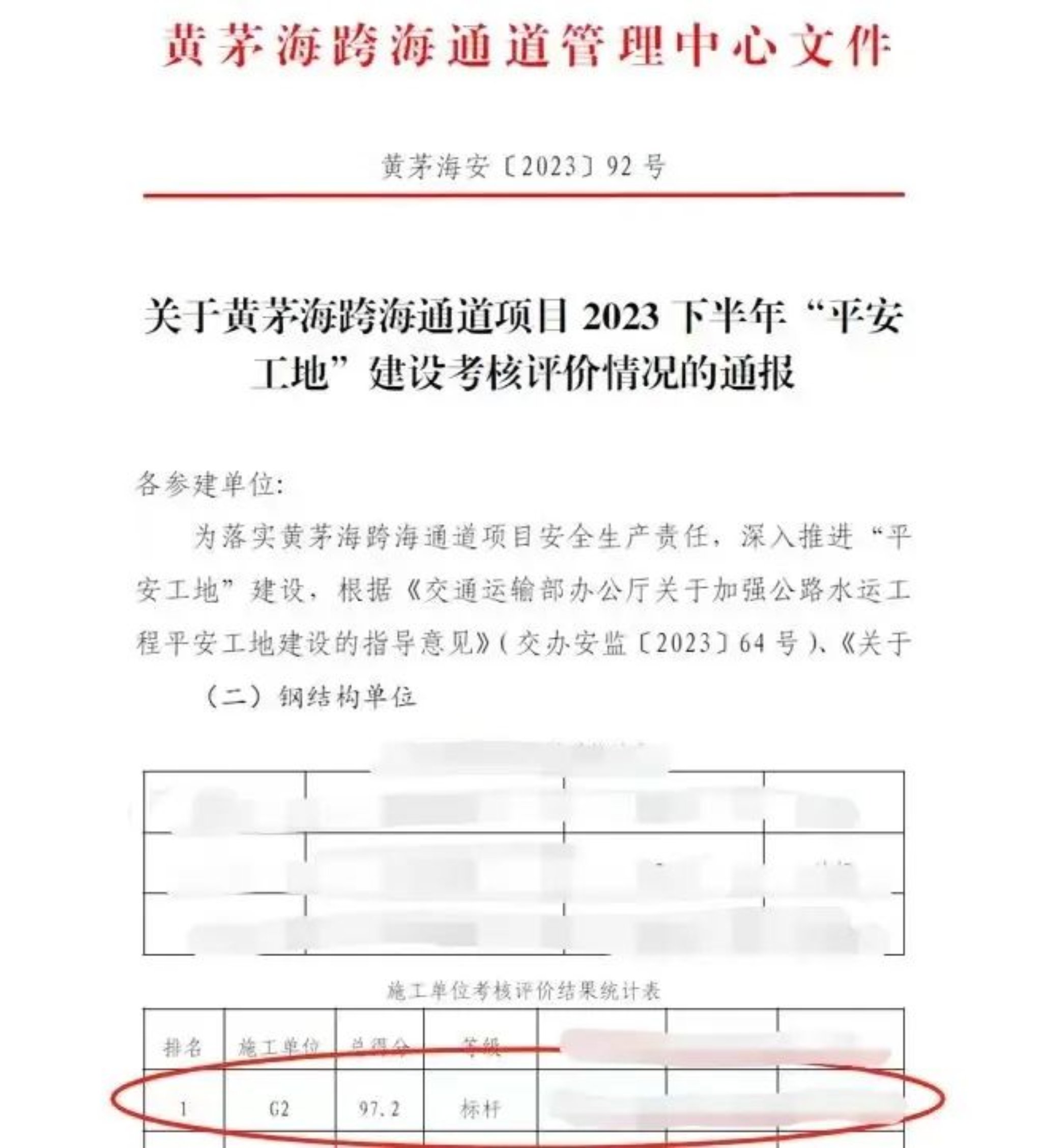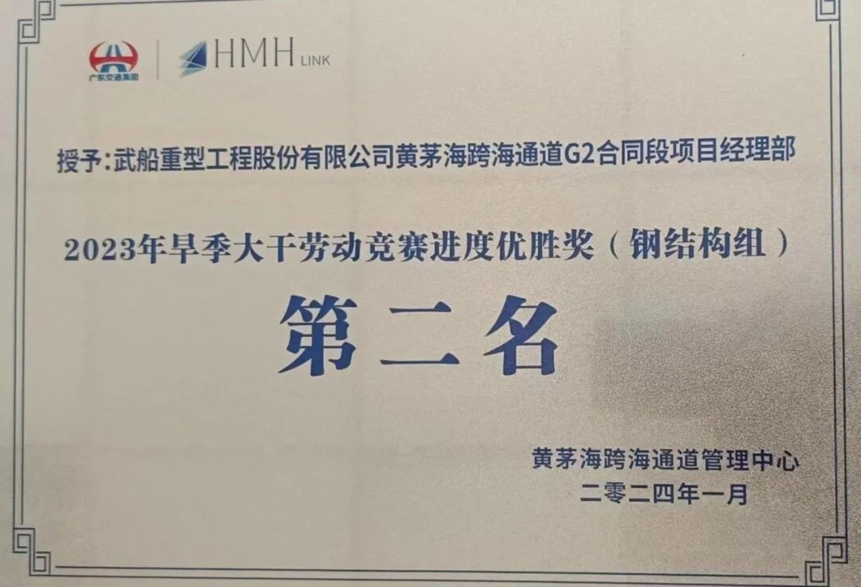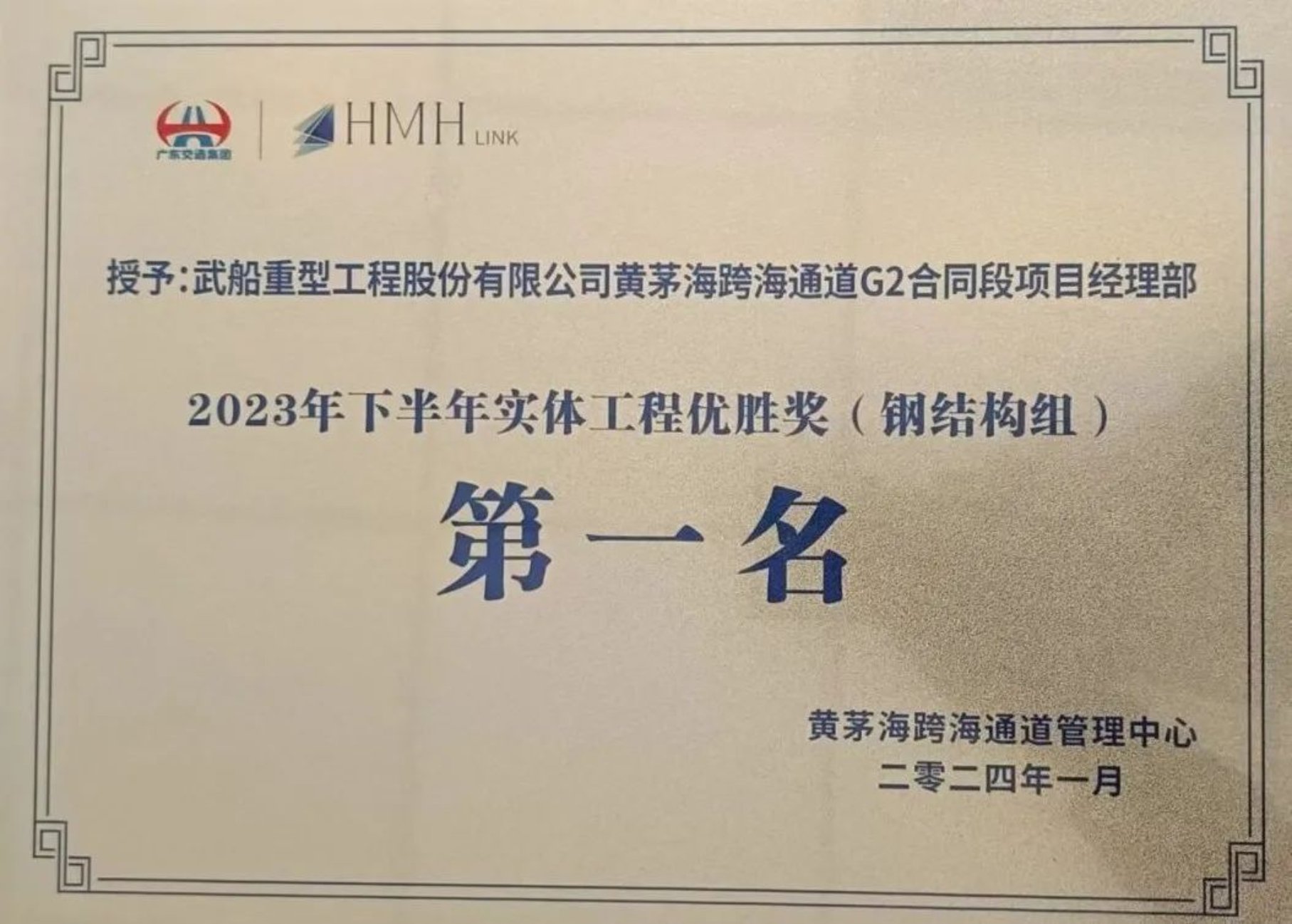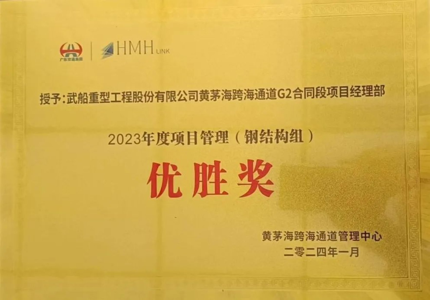 1月31日,從黃茅??绾Mǖ拦芾碇行膫鱽硐灿?。中國(guó)船舶集團(tuán)武昌造船重工公司黃茅??绾Mǖ?span style="font-family:'calibri'">G2合同段項(xiàng)目經(jīng)理部,獲得業(yè)主頒發(fā)的4個(gè)獎(jiǎng)項(xiàng):